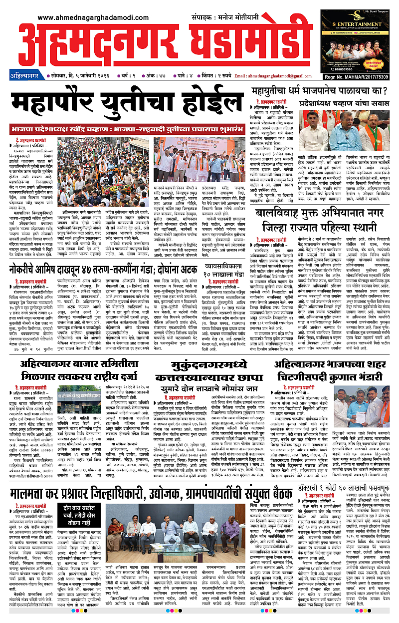05-01-2026 January 05, 2026 05-01-2026 1 2 3 4 Page 1Page 2Page 3Page 4 × 05-01-2026 Ahmednagar Ghadamodi 05 January 2026_001Ahmednagar Ghadamodi 05 January 2026_002Ahmednagar Ghadamodi 05 January 2026_003Ahmednagar Ghadamodi 05 January 2026_004 << First << 1 >> Last >> Page no 1Page no 2Page no 3Page no 4