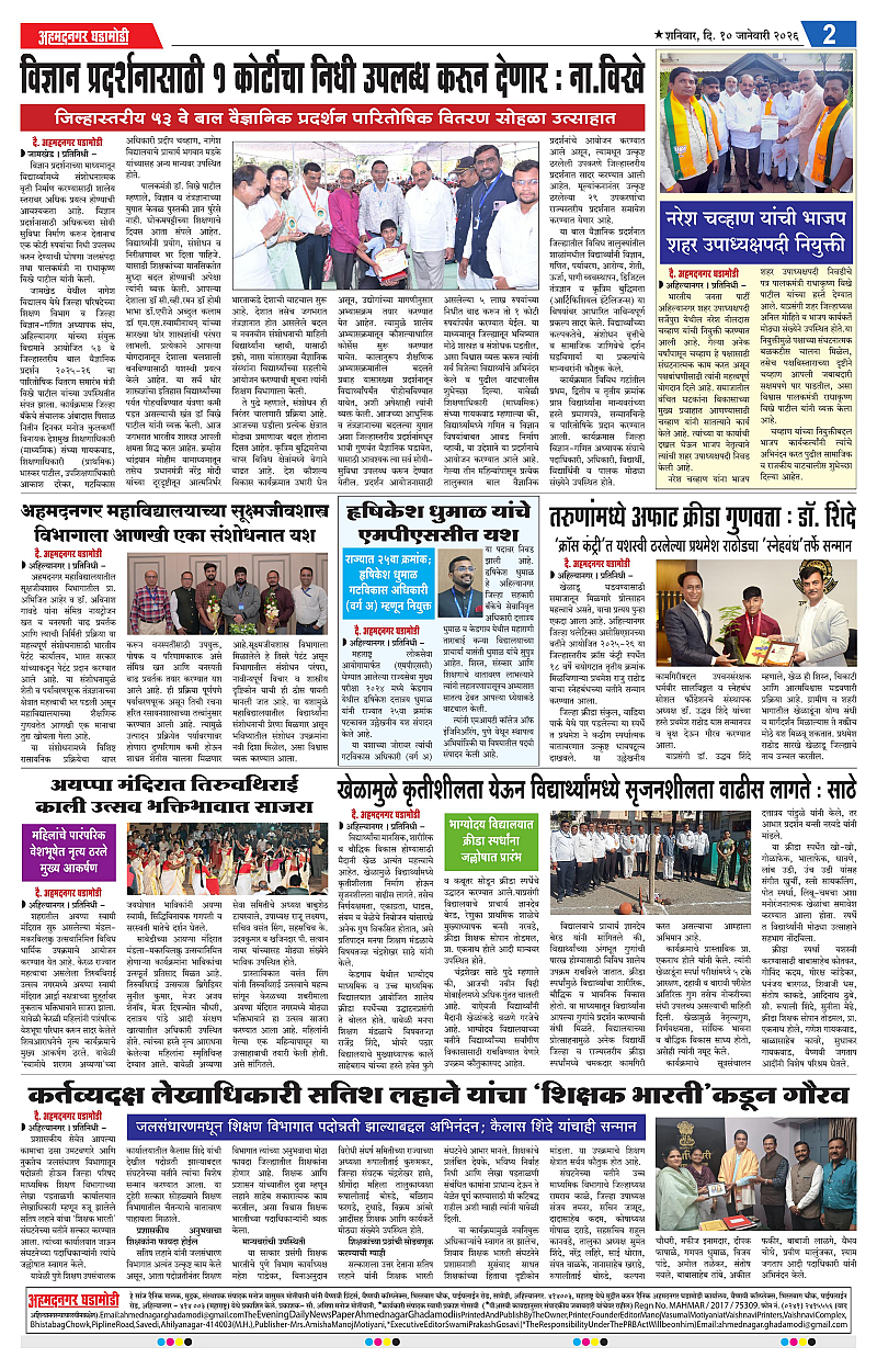 10-01-2026 Page: 2 January 10, 2026 10-01-2026 1 2 3 4 Page 1Page 2Page 3Page 4 × 10-01-2026 Ahmednagar Ghadamodi 10 January 2026_001Ahmednagar Ghadamodi 10 January 2026_002Ahmednagar Ghadamodi 10 January 2026_003Ahmednagar Ghadamodi 10 January 2026_004 << First << 2 >> Last >> Page no 1Page no 2Page no 3Page no 4