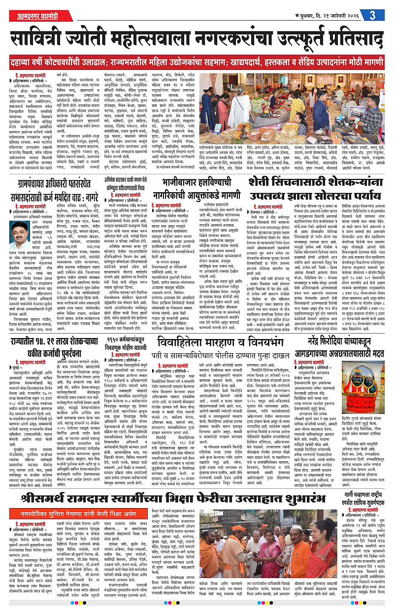 21-01-2026 Page: 3 January 21, 2026 21-01-2026 1 2 3 4 Page 1Page 2Page 3Page 4 × 21-01-2026 Ahmednagar Ghadamodi 21 January 2026_001Ahmednagar Ghadamodi 21 January 2026_002Ahmednagar Ghadamodi 21 January 2026_003Ahmednagar Ghadamodi 21 January 2026_004 << First << 3 >> Last >> Page no 1Page no 2Page no 3Page no 4