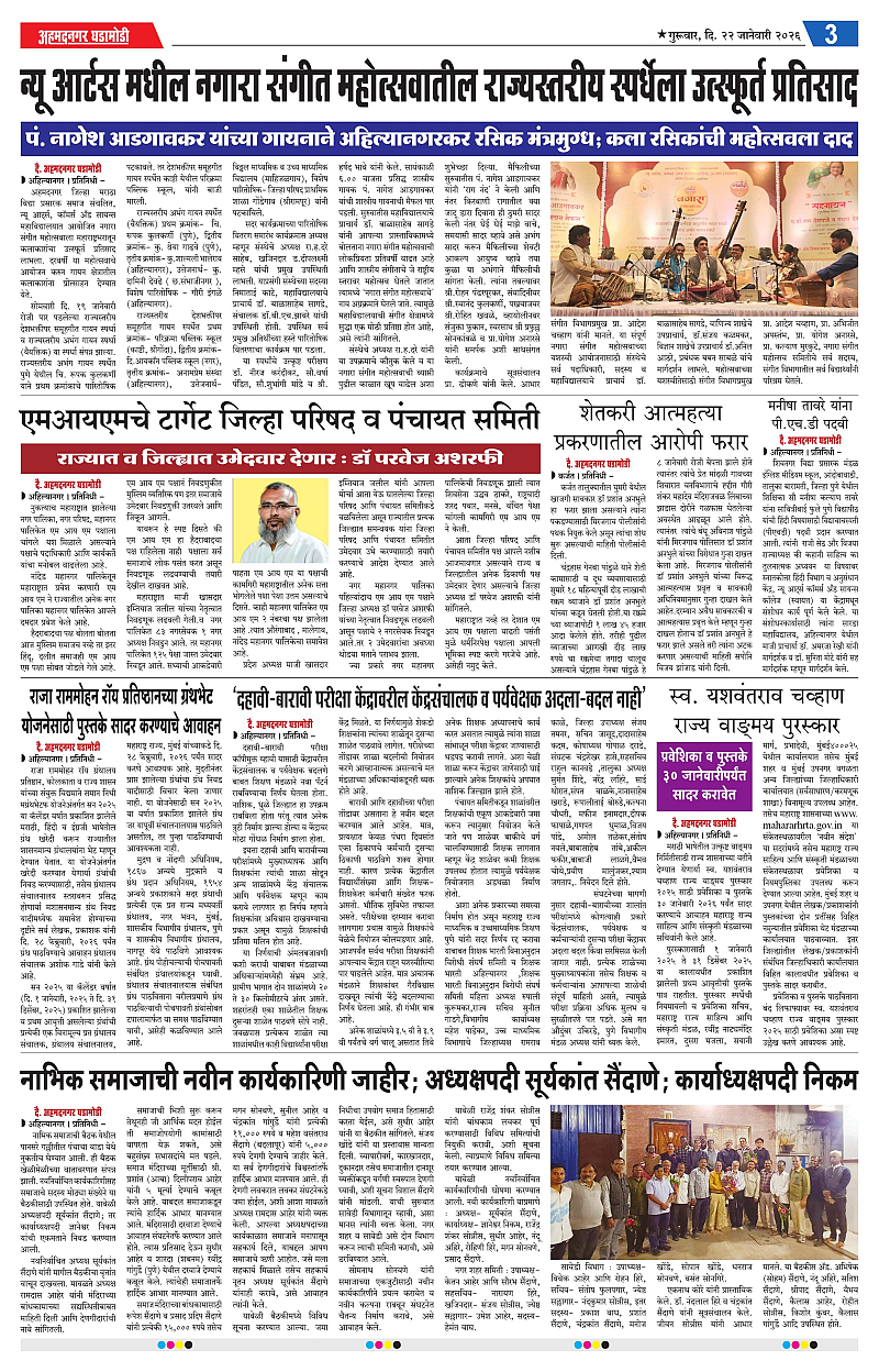 22-01-2026 Page: 3 January 22, 2026 22-01-2026 1 2 3 4 Page 1Page 2Page 3Page 4 × 22-01-2026 Ahmednagar Ghadamodi 22 January 2026_001Ahmednagar Ghadamodi 22 January 2026_002Ahmednagar Ghadamodi 22 January 2026_003Ahmednagar Ghadamodi 22 January 2026_004 << First << 3 >> Last >> Page no 1Page no 2Page no 3Page no 4