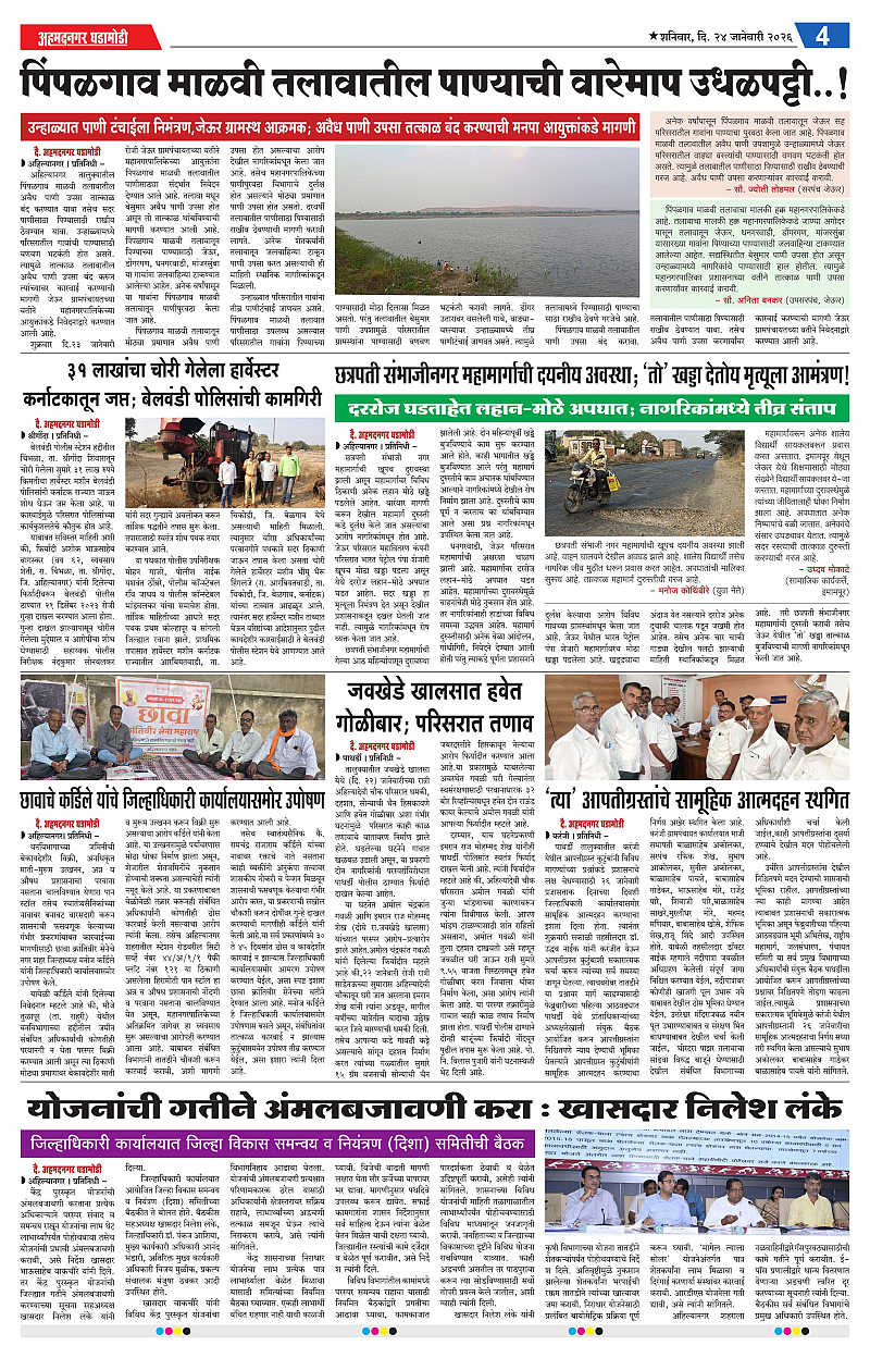 24-01-2026 Page: 4 January 24, 2026 24-01-2026 1 2 3 4 Page 1Page 2Page 3Page 4 × 24-01-2026 Ahmednagar Ghadamodi 24 January 2026_001Ahmednagar Ghadamodi 24 January 2026_002Ahmednagar Ghadamodi 24 January 2026_003Ahmednagar Ghadamodi 24 January 2026_004 << First << 4 >> Last >> Page no 1Page no 2Page no 3Page no 4
