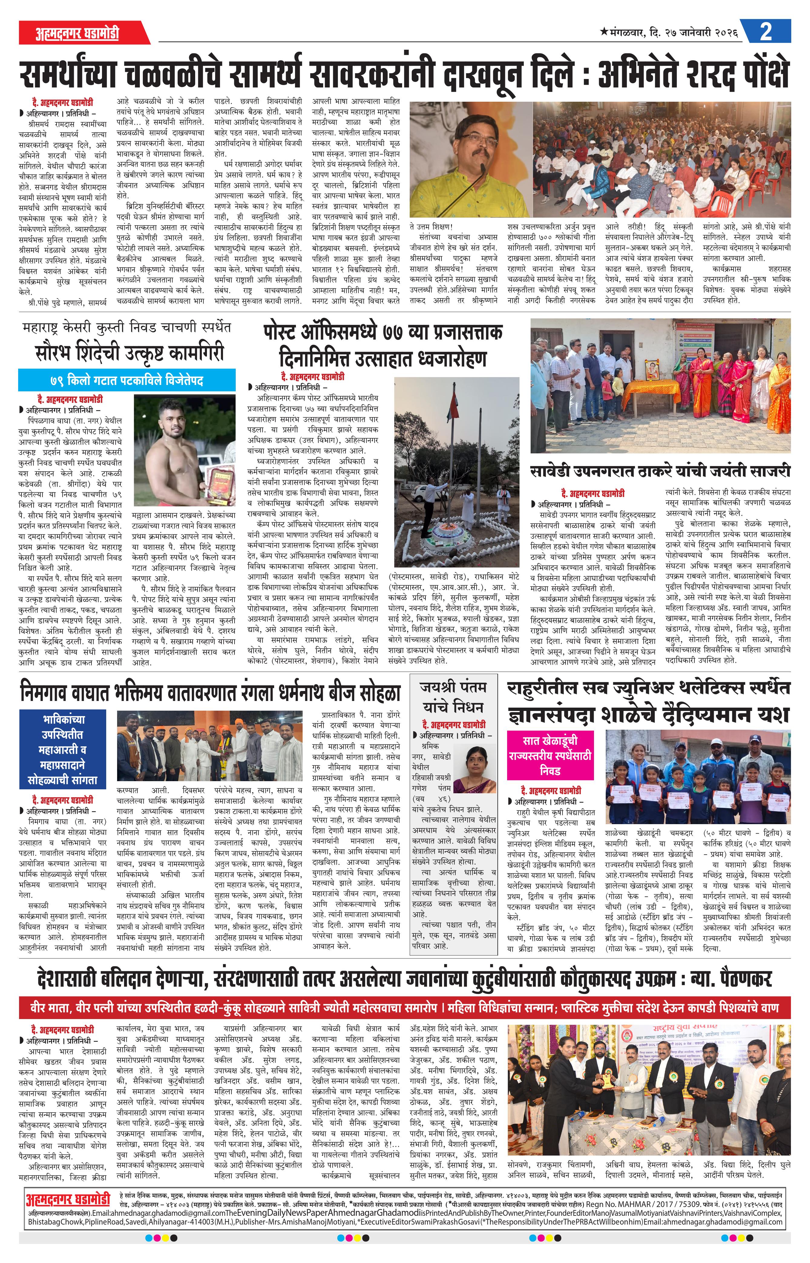 27-01-2026 Page: 2 January 27, 2026 27-01-2026 1 2 3 4 Page 1Page 2Page 3Page 4 × 27-01-2026 Ahmednagar Ghadamodi 27 January 2026_001Ahmednagar Ghadamodi 27 January 2026_002Ahmednagar Ghadamodi 27 January 2026_003Ahmednagar Ghadamodi 27 January 2026_004 << First << 2 >> Last >> Page no 1Page no 2Page no 3Page no 4