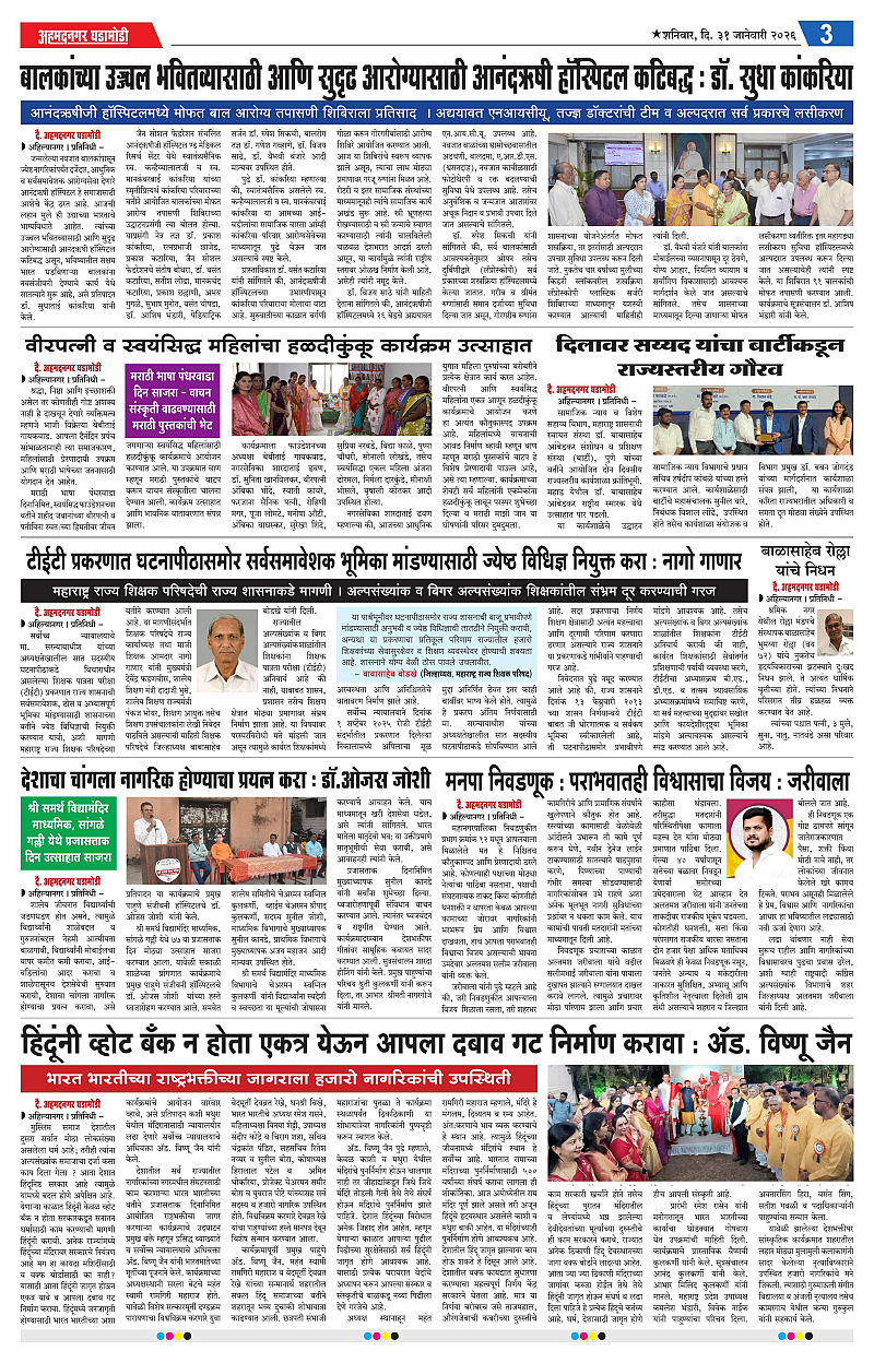 31-01-2026 Page: 3 January 31, 2026 31-01-2026 1 2 3 4 Page 1Page 2Page 3Page 4 × 31-01-2026 Ahmednagar Ghadamodi 31 January 2026 page 1_001Ahmednagar Ghadamodi 31 January 2026_002Ahmednagar Ghadamodi 31 January 2026_003Ahmednagar Ghadamodi 31 January 2026_004 << First << 3 >> Last >> Page no 1Page no 2Page no 3Page no 4