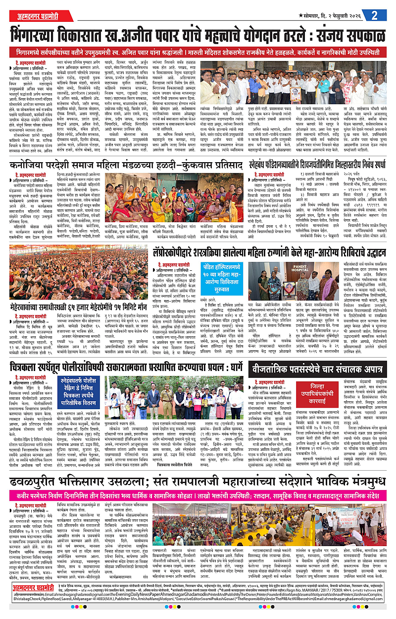 02-02-2026 Page: 2 February 02, 2026 02-02-2026 1 2 3 4 Page 1Page 2Page 3Page 4 × 02-02-2026 Ahmednagar Ghadamodi 02 February 2026_001Ahmednagar Ghadamodi 02 February 2026_002Ahmednagar Ghadamodi 02 February 2026_003Ahmednagar Ghadamodi 02 February 2026_004 << First << 2 >> Last >> Page no 1Page no 2Page no 3Page no 4