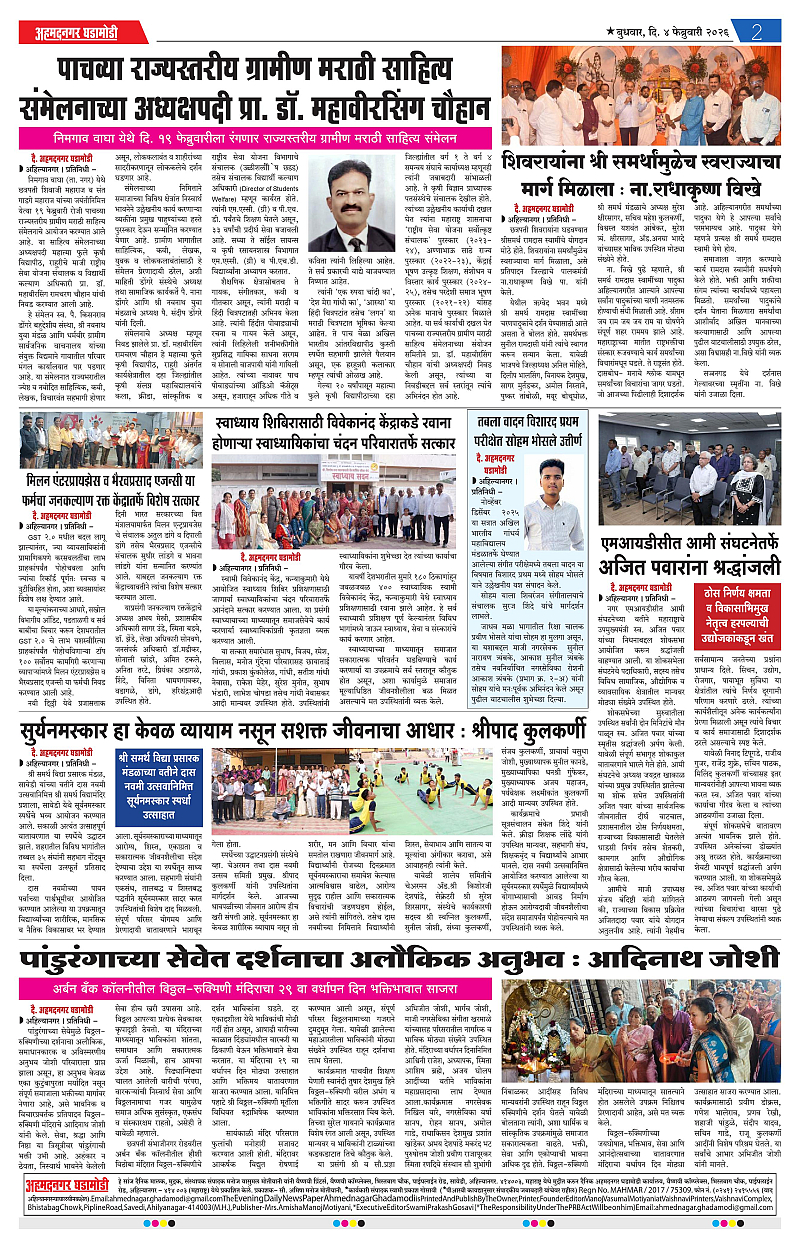 04-02-2026 Page: 2 February 04, 2026 04-02-2026 1 2 3 4 Page 1Page 2Page 3Page 4 × 04-02-2026 Ahmednagar Ghadamodi 4 Feb 2026_001Ahmednagar Ghadamodi 4 Feb 2026_002Ahmednagar Ghadamodi 4 Feb 2026_003Ahmednagar Ghadamodi 4 Feb 2026_004 << First << 2 >> Last >> Page no 1Page no 2Page no 3Page no 4