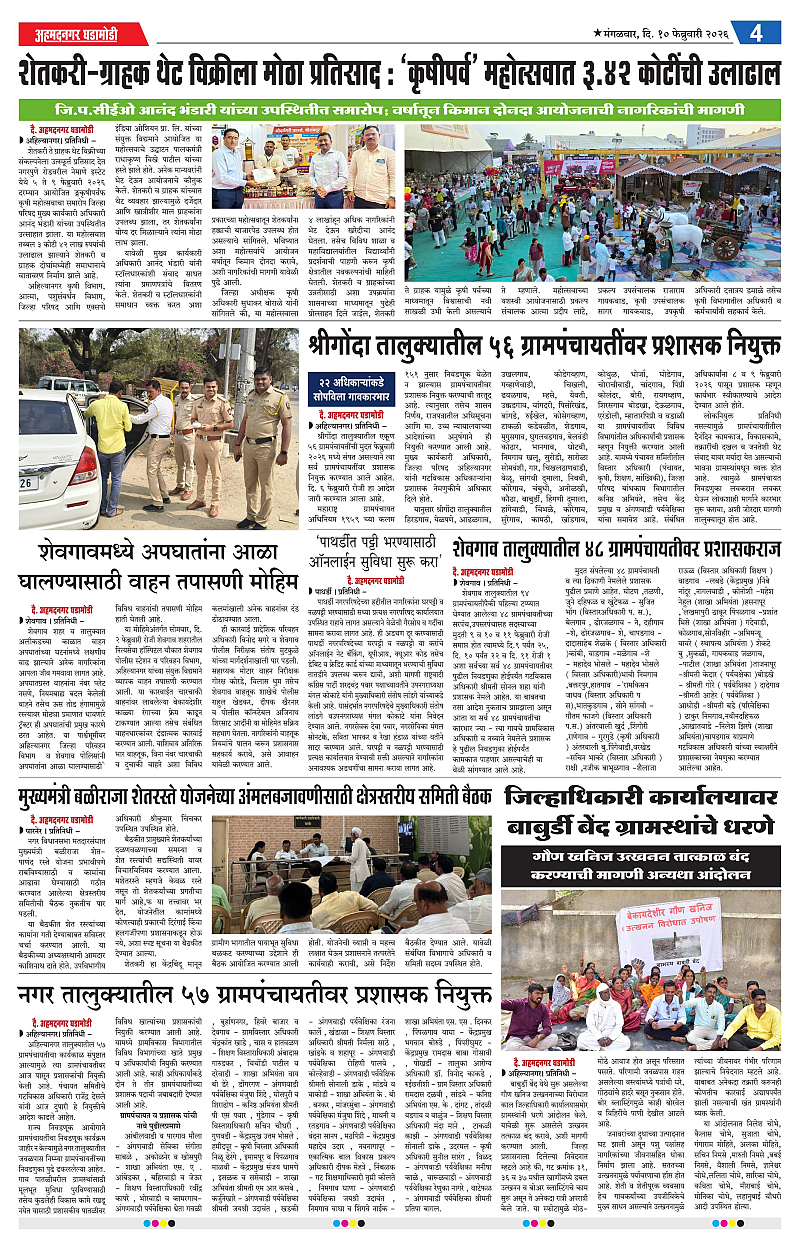 10-02-2026 Page: 4 February 10, 2026 10-02-2026 1 2 3 4 Page 1Page 2Page 3Page 4 × 10-02-2026 Ahmednagar Ghadamodi 10 Feb 2026_001Ahmednagar Ghadamodi 10 Feb 2026_002Ahmednagar Ghadamodi 10 Feb 2026_003Ahmednagar Ghadamodi 10 Feb 2026_004 << First << 4 >> Last >> Page no 1Page no 2Page no 3Page no 4