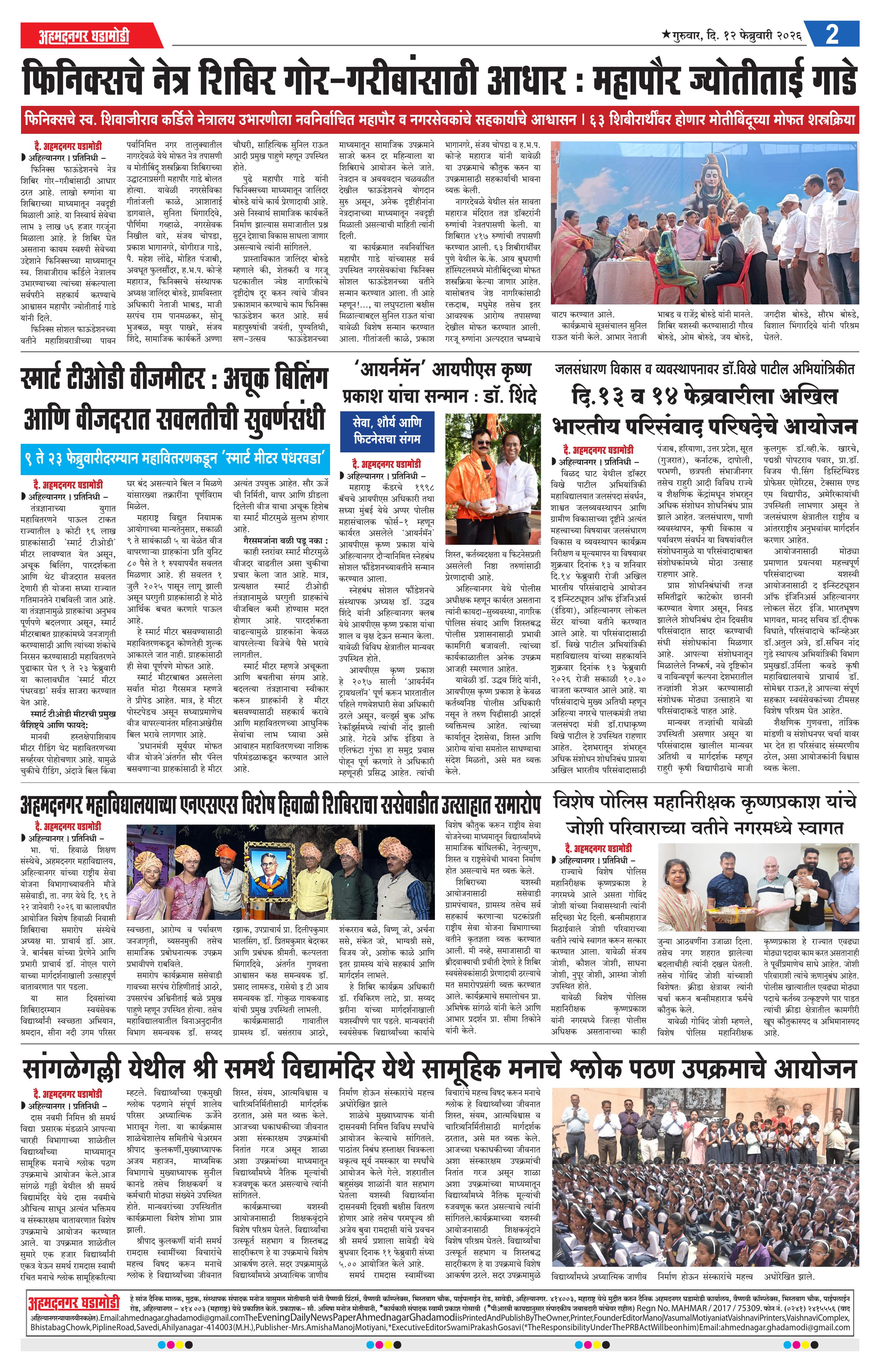 12-02-2026 Page: 2 February 12, 2026 12-02-2026 1 2 3 4 Page 1Page 2Page 3Page 4 × 12-02-2026 Ahmednagar Ghadamodi 12 Feb 2026_001Ahmednagar Ghadamodi 12 Feb 2026_002Ahmednagar Ghadamodi 12 Feb 2026_003Ahmednagar Ghadamodi 12 Feb 2026_004 << First << 2 >> Last >> Page no 1Page no 2Page no 3Page no 4