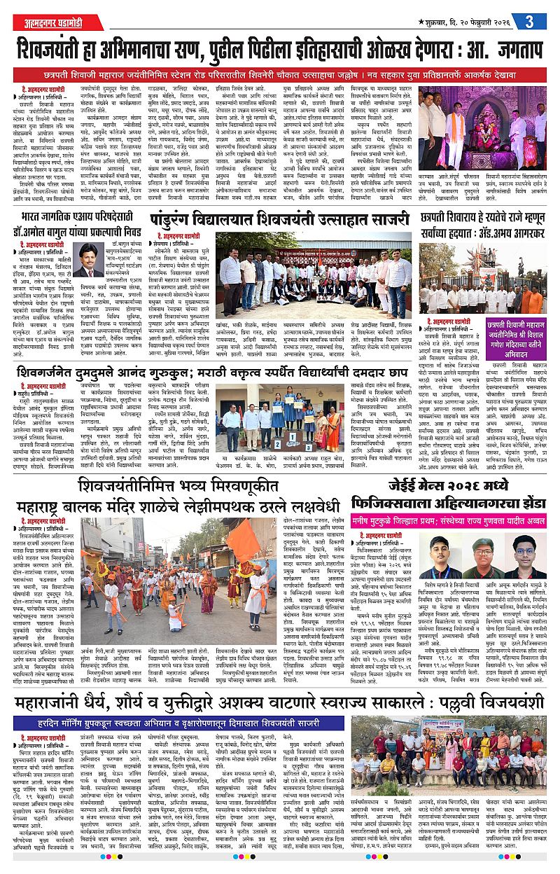 20-02-2026 Page: 3 February 20, 2026 20-02-2026 1 2 3 4 Page 1Page 2Page 3Page 4 × 20-02-2026 Ahmednagar Ghadamodi 20 Feb 2026_001Ahmednagar Ghadamodi 20 Feb 2026_002Ahmednagar Ghadamodi 20 Feb 2026_003Ahmednagar Ghadamodi 20 Feb 2026_004 << First << 3 >> Last >> Page no 1Page no 2Page no 3Page no 4