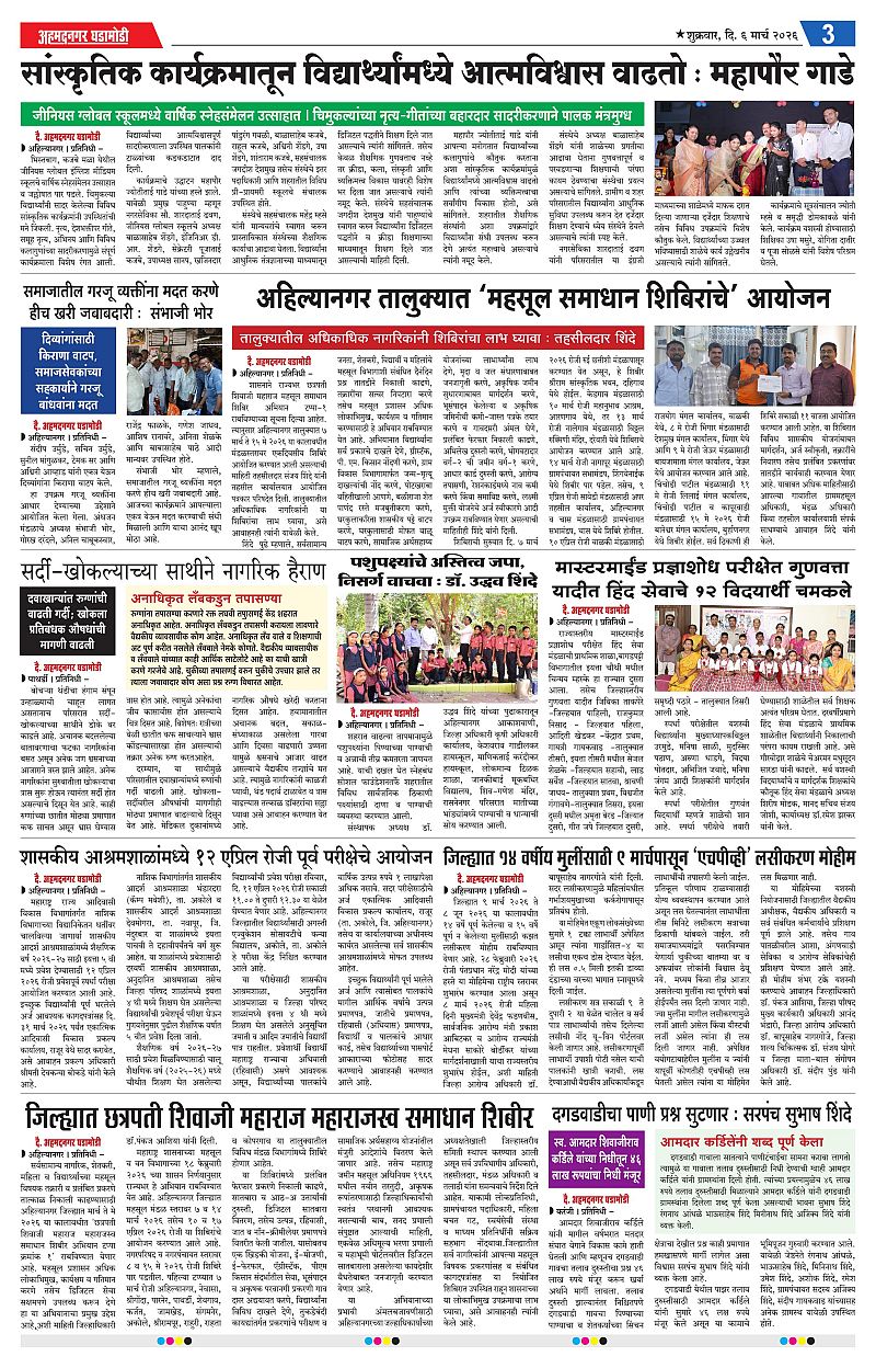 06-03-2026 Page: 3 March 06, 2026 06-03-2026 1 2 3 4 Page 1Page 2Page 3Page 4 × 06-03-2026 Ahmednagar Ghadamodi 6 March 2026_001Ahmednagar Ghadamodi 6 March 2026_002Ahmednagar Ghadamodi 6 March 2026_003Ahmednagar Ghadamodi 6 March 2026_004 << First << 3 >> Last >> Page no 1Page no 2Page no 3Page no 4