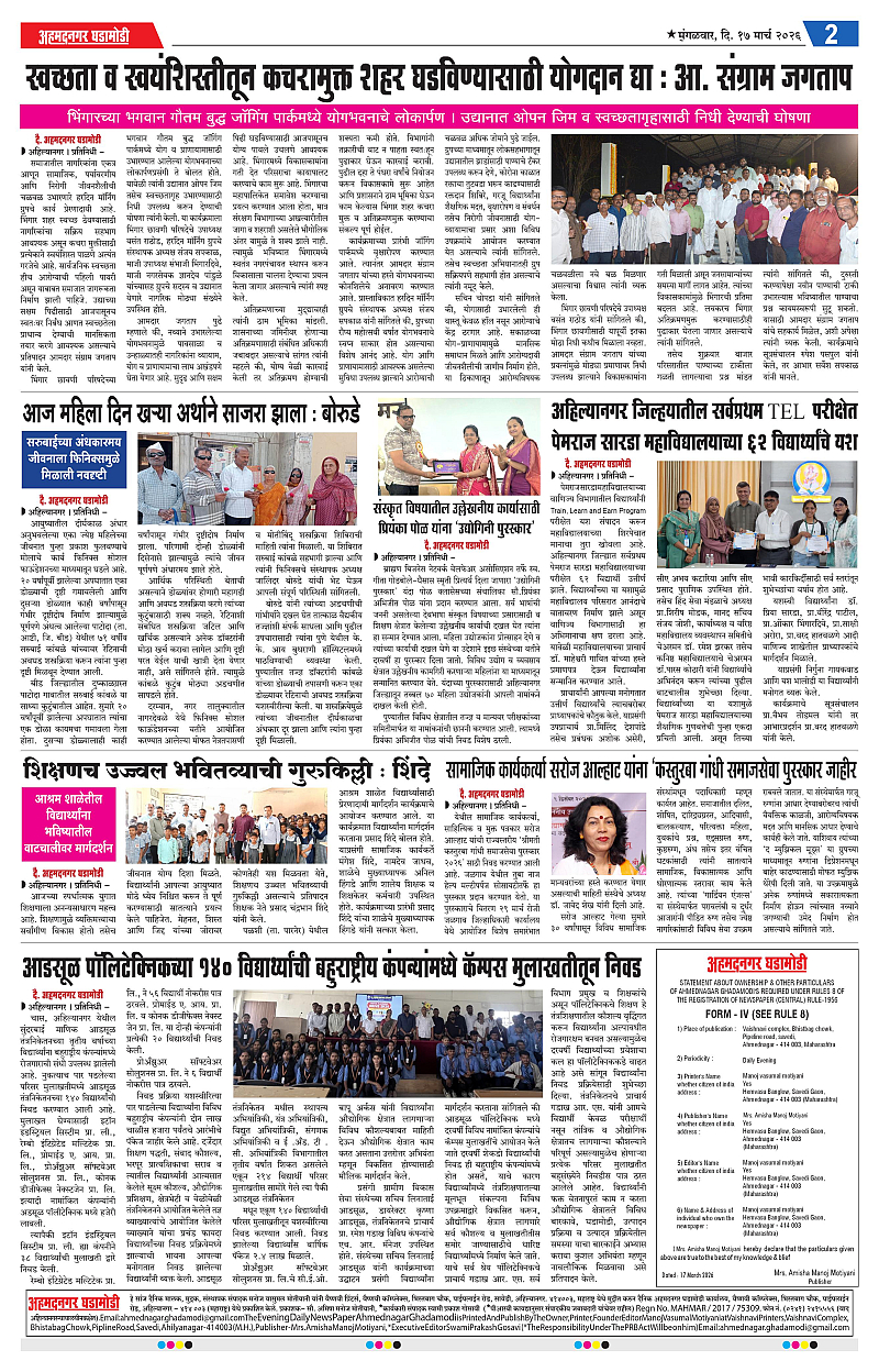 17-03-2026 Page: 2 March 17, 2026 17-03-2026 1 2 3 4 Page 1Page 2Page 3Page 4 × 17-03-2026 Ahmednagar Ghadamodi 17 March 2026_001Ahmednagar Ghadamodi 17 March 2026_002Ahmednagar Ghadamodi 17 March 2026_003Ahmednagar Ghadamodi 17 March 2026_004 << First << 2 >> Last >> Page no 1Page no 2Page no 3Page no 4