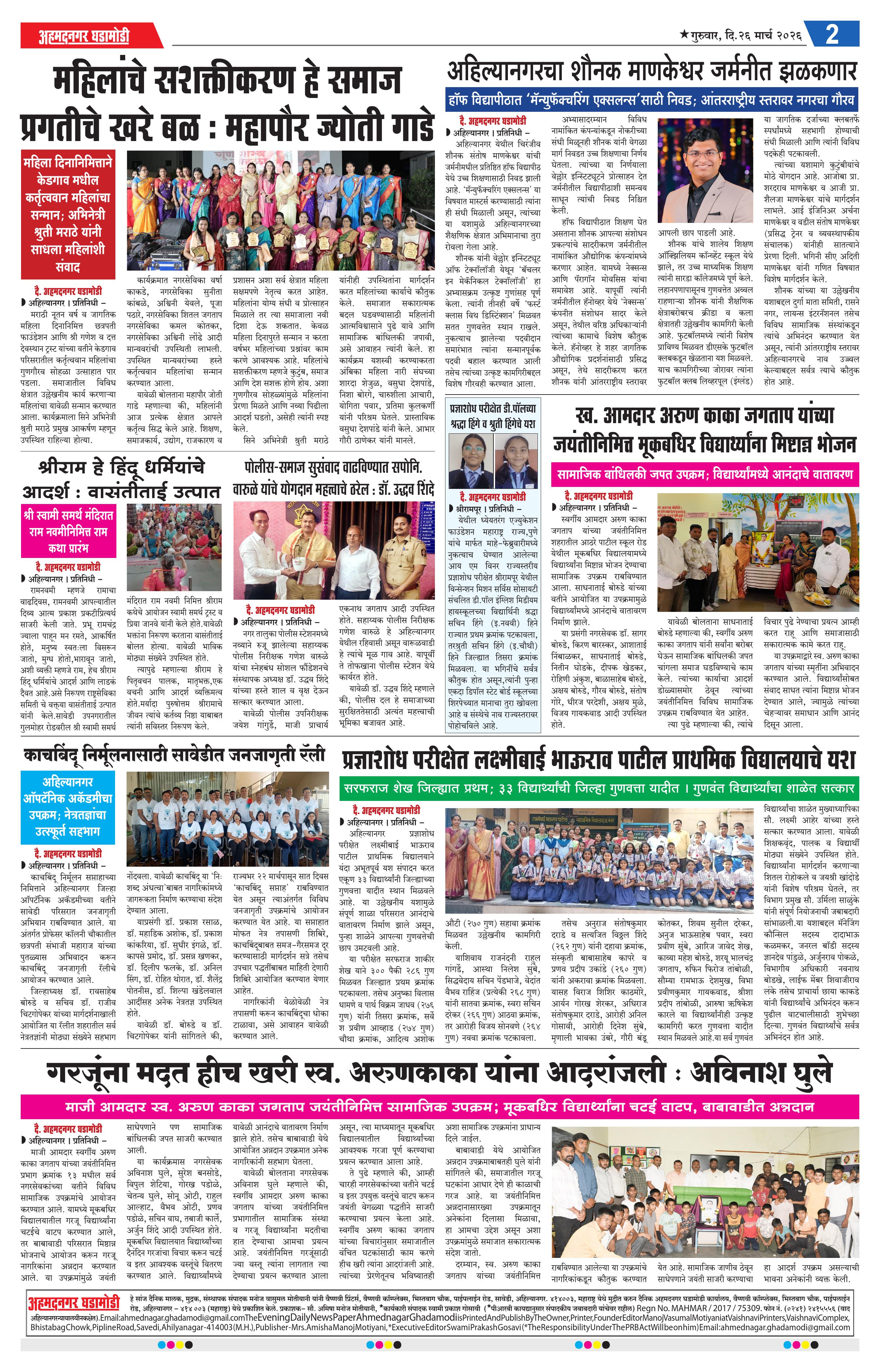 26-03-2026 Page: 2 March 26, 2026 26-03-2026 1 2 3 4 Page 1Page 2Page 3Page 4 × 26-03-2026 Ahmednagar Ghadamodi 26 March 2026_001Ahmednagar Ghadamodi 26 March 2026_002Ahmednagar Ghadamodi 26 March 2026_003Ahmednagar Ghadamodi 26 March 2026_004 << First << 2 >> Last >> Page no 1Page no 2Page no 3Page no 4