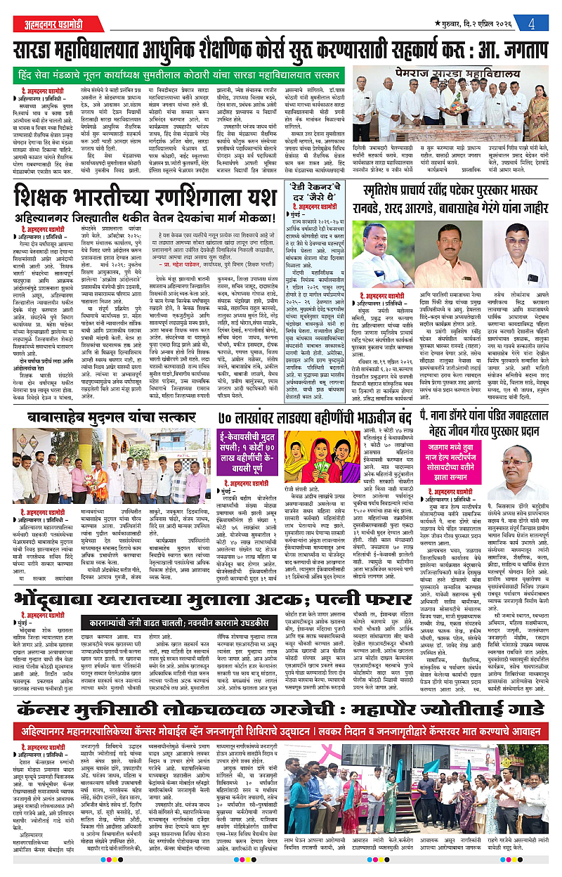 02-04-2026 Page: 4 April 02, 2026 02-04-2026 1 2 3 4 Page 1Page 2Page 3Page 4 × 02-04-2026 ahmednagar ghadamodi 2 april 2026_001ahmednagar ghadamodi 2 april 2026_002ahmednagar ghadamodi 2 april 2026_003ahmednagar ghadamodi 2 april 2026_004 << First << 4 >> Last >> Page no 1Page no 2Page no 3Page no 4