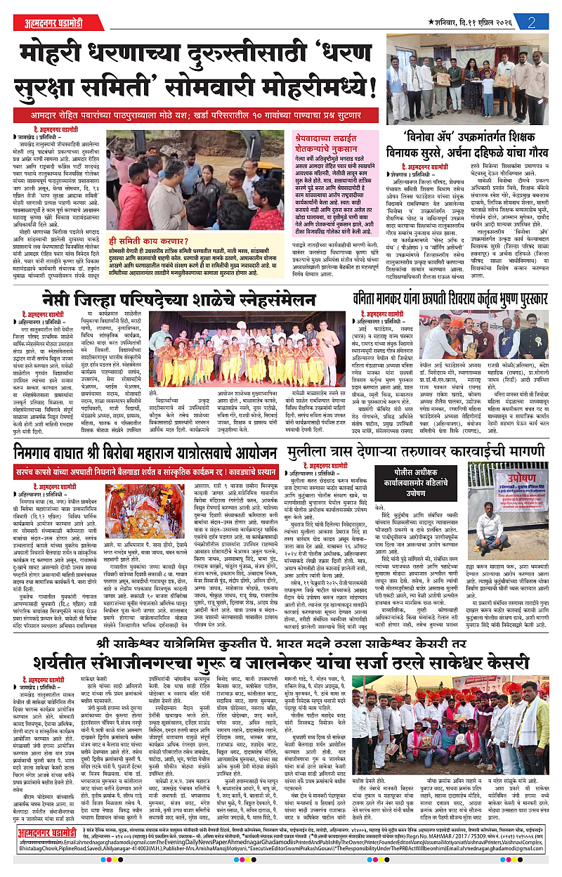 11-04-2026 Page: 2 April 11, 2026 11-04-2026 1 2 3 4 Page 1Page 2Page 3Page 4 × 11-04-2026 Ahmednagar Ghadamodi 11 April 2026_001Ahmednagar Ghadamodi 11 April 2026_002Ahmednagar Ghadamodi 11 April 2026_003Ahmednagar Ghadamodi 11 April 2026_004 << First << 2 >> Last >> Page no 1Page no 2Page no 3Page no 4