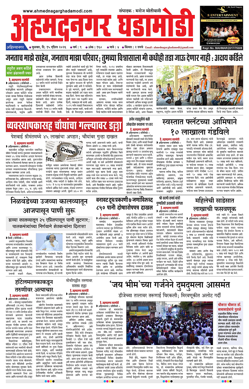 15-04-2026 April 16, 2026 15-04-2026 1 2 3 4 Page 1Page 2Page 3Page 4 × 15-04-2026 ahmednagarghadamodi 15 April 2026_001ahmednagarghadamodi 15 April 2026_002ahmednagarghadamodi 15 April 2026_003ahmednagarghadamodi 15 April 2026_004 << First << 1 >> Last >> Page no 1Page no 2Page no 3Page no 4