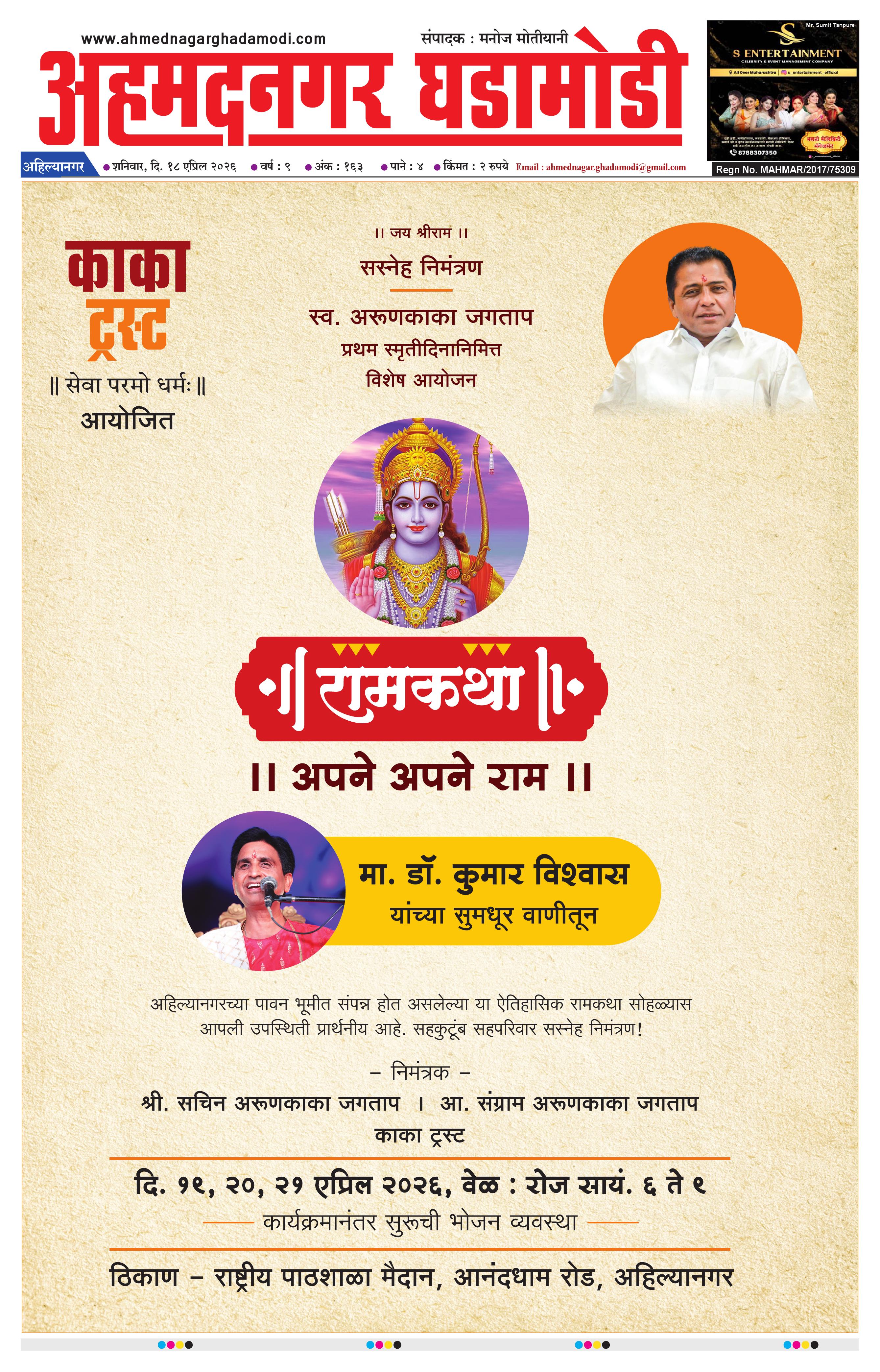 18-04-2026 April 18, 2026 18-04-2026 1 2 3 4 Page 1Page 2Page 3Page 4 × 18-04-2026 Ahmednagar Ghadamodi 18 April 2026_001Ahmednagar Ghadamodi 18 April 2026_002Ahmednagar Ghadamodi 18 April 2026_003Ahmednagar Ghadamodi 18 April 2026_004 << First << 1 >> Last >> Page no 1Page no 2Page no 3Page no 4
