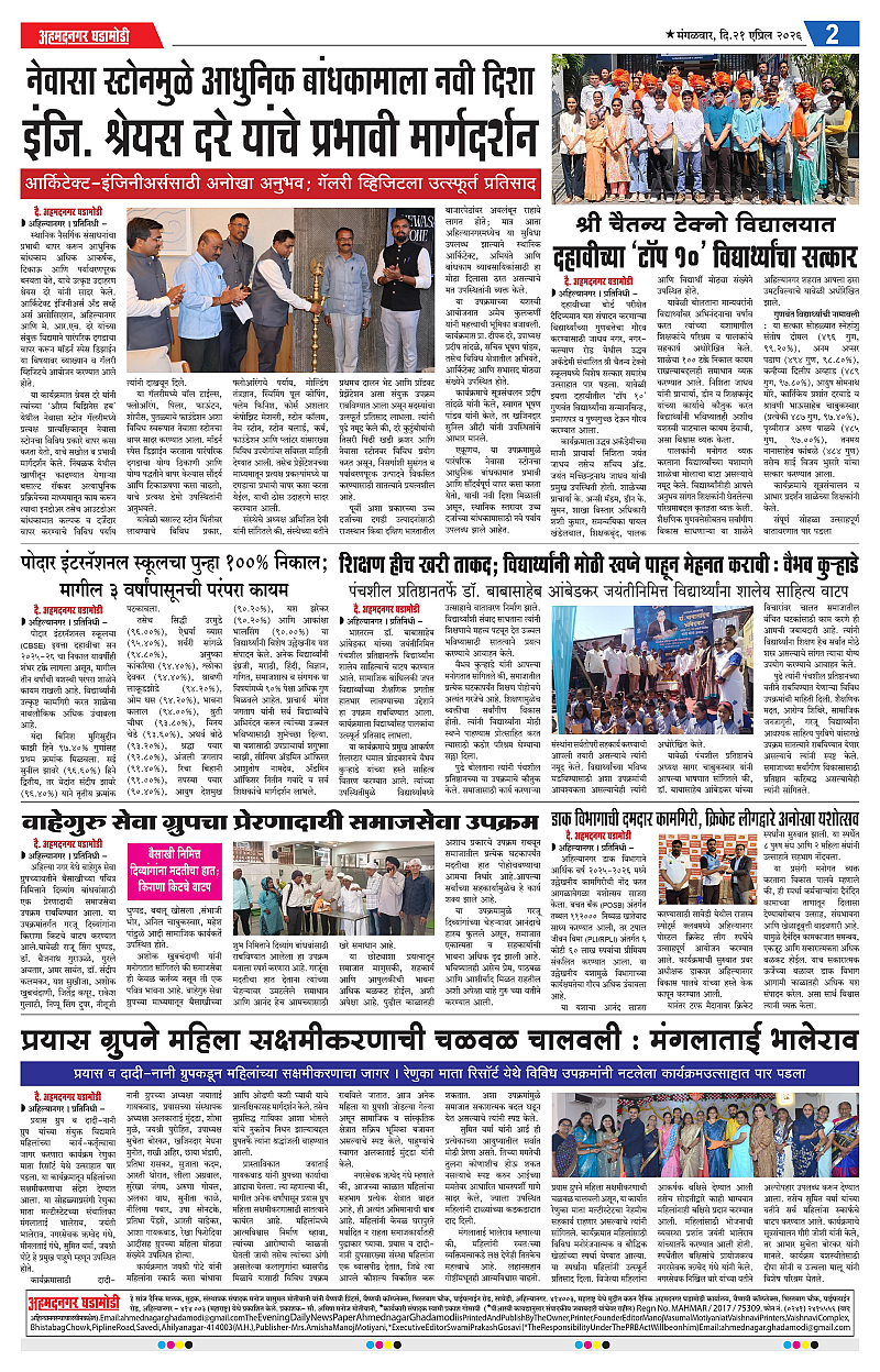 21-04-2026 Page: 2 April 21, 2026 21-04-2026 1 2 3 4 Page 1Page 2Page 3Page 4 × 21-04-2026 Ahmednagar Ghadamodi 21 April 2026_001Ahmednagar Ghadamodi 21 April 2026_002Ahmednagar Ghadamodi 21 April 2026_003Ahmednagar Ghadamodi 21 April 2026_004 << First << 2 >> Last >> Page no 1Page no 2Page no 3Page no 4