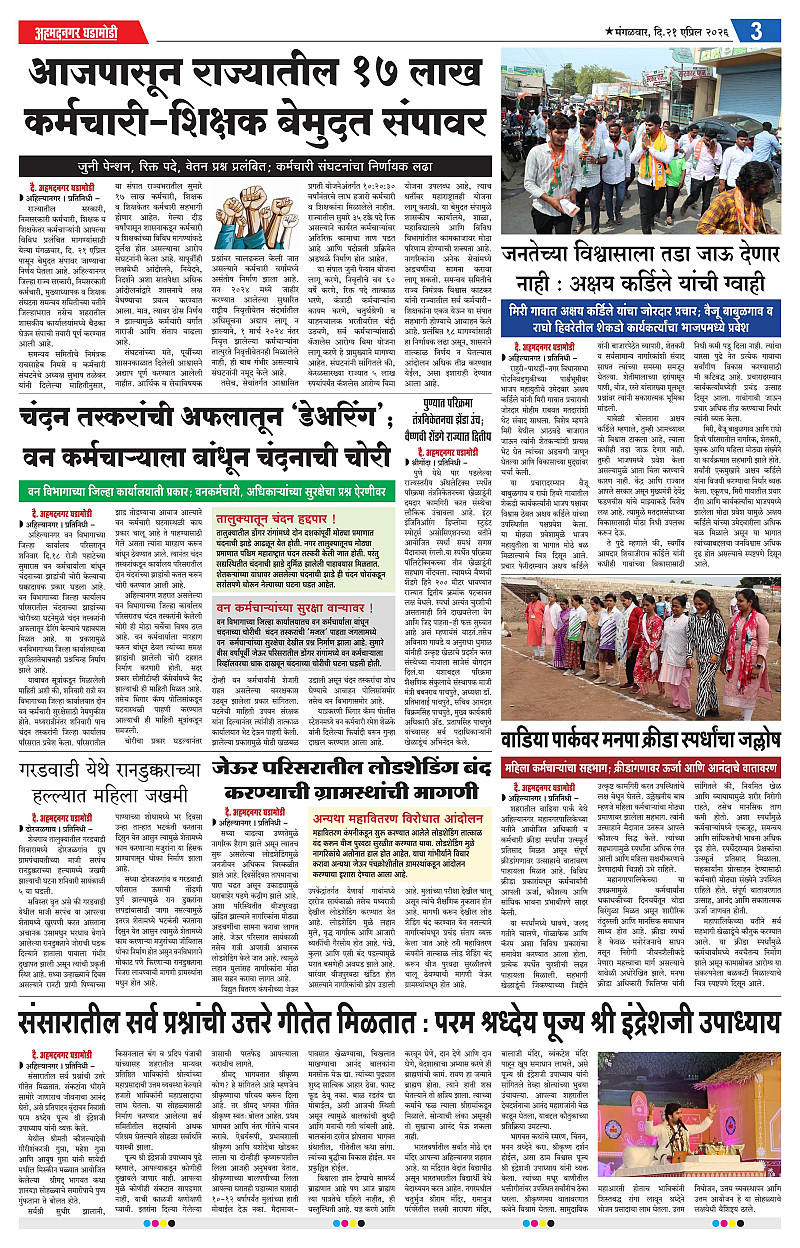 21-04-2026 Page: 3 April 21, 2026 21-04-2026 1 2 3 4 Page 1Page 2Page 3Page 4 × 21-04-2026 Ahmednagar Ghadamodi 21 April 2026_001Ahmednagar Ghadamodi 21 April 2026_002Ahmednagar Ghadamodi 21 April 2026_003Ahmednagar Ghadamodi 21 April 2026_004 << First << 3 >> Last >> Page no 1Page no 2Page no 3Page no 4