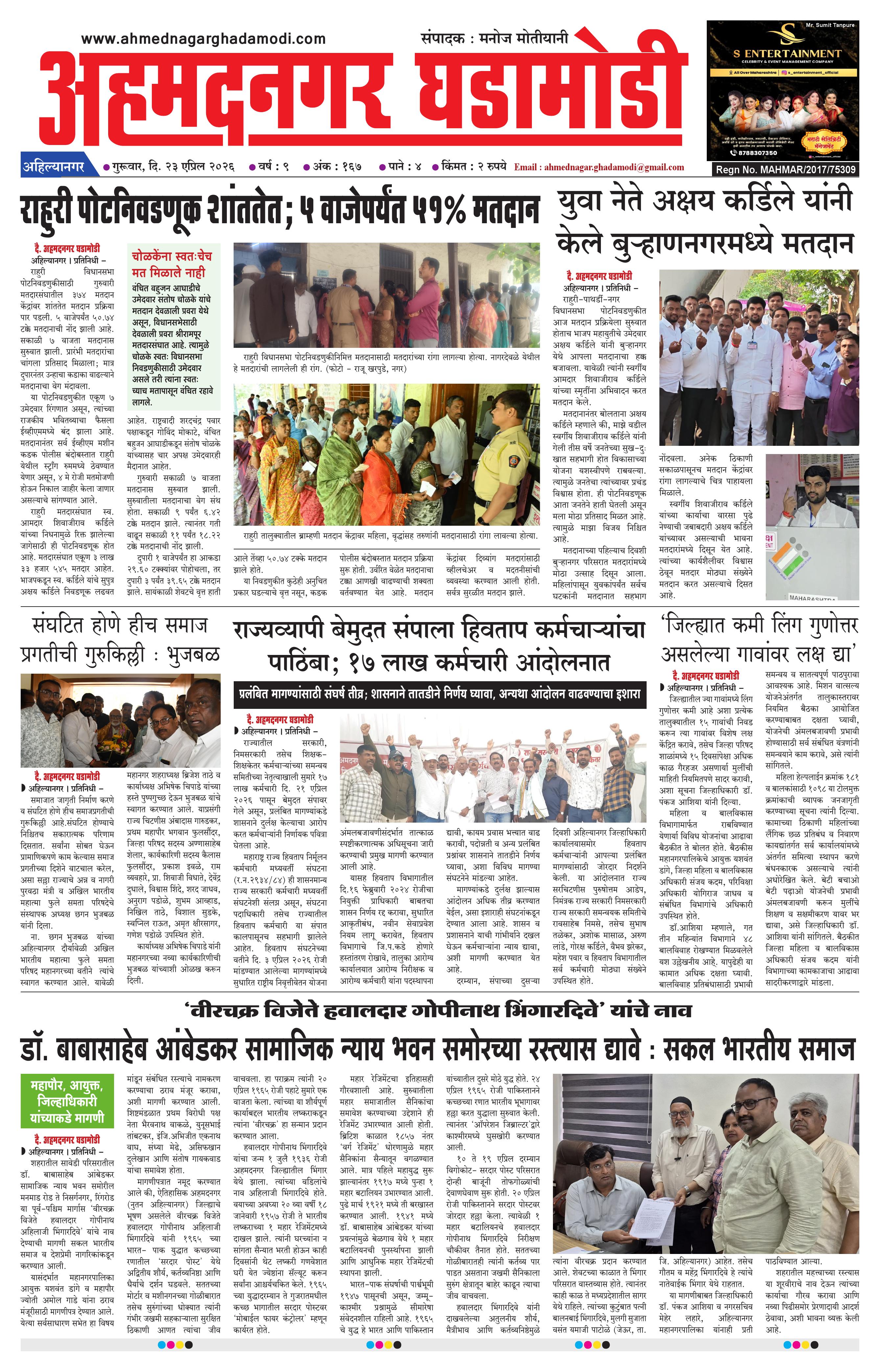 23-04-2026 April 23, 2026 23-04-2026 1 2 3 4 Page 1Page 2Page 3Page 4 × 23-04-2026 Ahmednagar Ghadamodi 23 April 2026_001Ahmednagar Ghadamodi 23 April 2026_002Ahmednagar Ghadamodi 23 April 2026_003Ahmednagar Ghadamodi 23 April 2026_004 << First << 1 >> Last >> Page no 1Page no 2Page no 3Page no 4