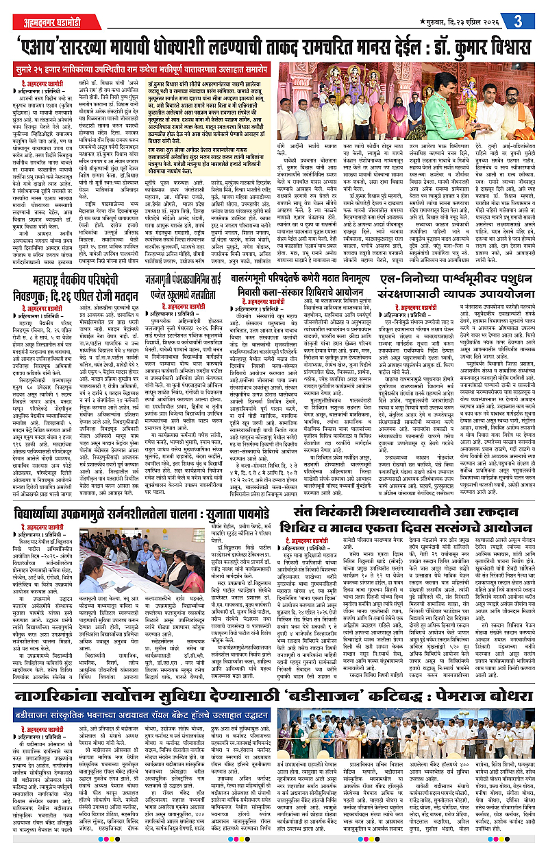 23-04-2026 Page: 3 April 23, 2026 23-04-2026 1 2 3 4 Page 1Page 2Page 3Page 4 × 23-04-2026 Ahmednagar Ghadamodi 23 April 2026_001Ahmednagar Ghadamodi 23 April 2026_002Ahmednagar Ghadamodi 23 April 2026_003Ahmednagar Ghadamodi 23 April 2026_004 << First << 3 >> Last >> Page no 1Page no 2Page no 3Page no 4