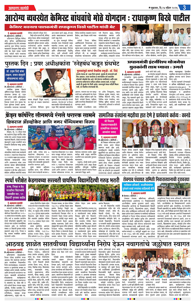 24-04-2026 Page: 3 April 24, 2026 24-04-2026 1 2 3 4 Page 1Page 2Page 3Page 4 × 24-04-2026 Ahmednagar Ghadamodi 24 April 2026_001Ahmednagar Ghadamodi 24 April 2026_002Ahmednagar Ghadamodi 24 April 2026_003Ahmednagar Ghadamodi 24 April 2026_004 << First << 3 >> Last >> Page no 1Page no 2Page no 3Page no 4