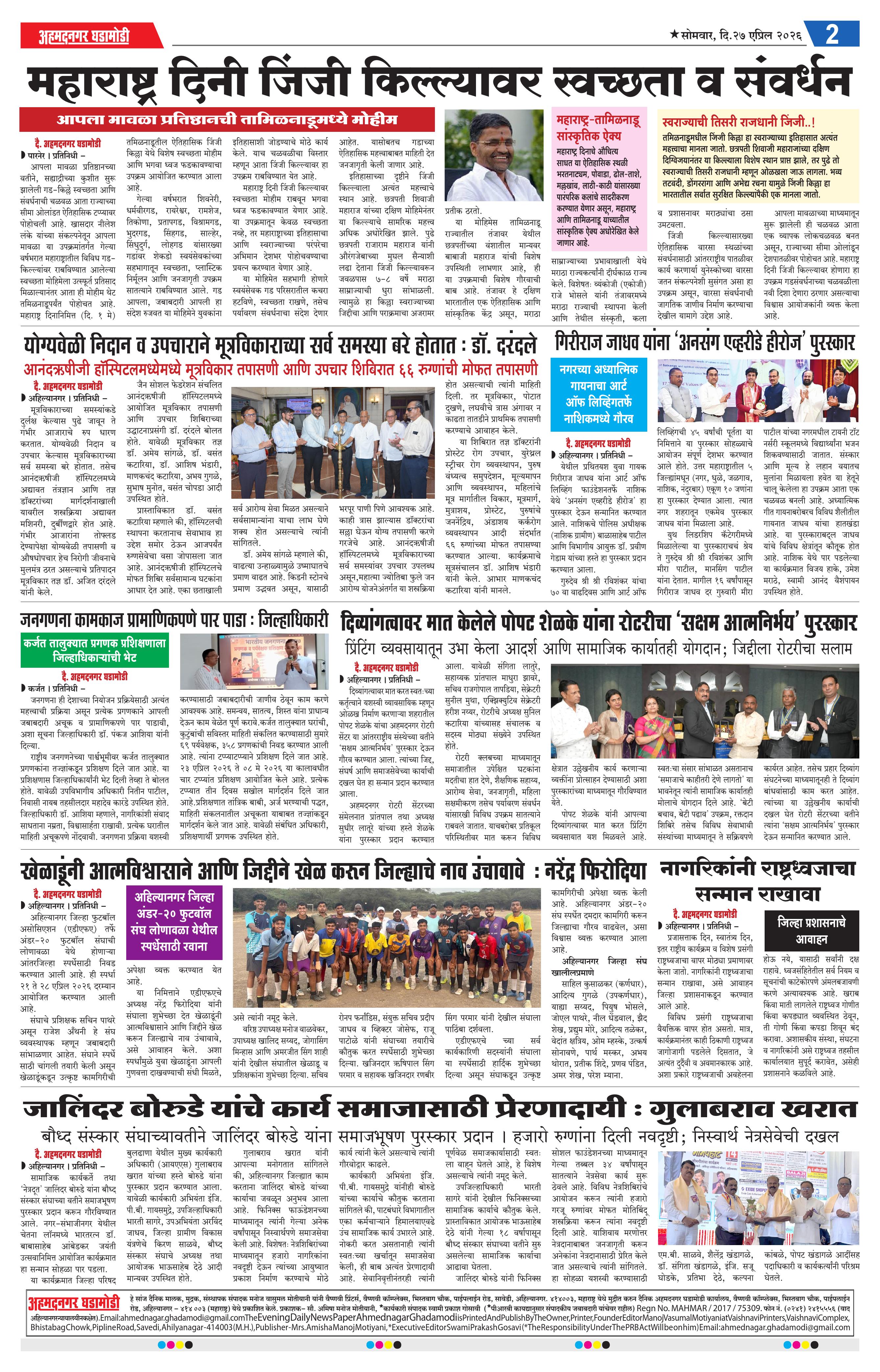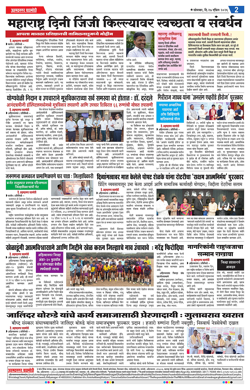 27-04-2026 Page: 2 April 27, 2026 27-04-2026 1 2 3 4 Page 1Page 2Page 3Page 4 × 27-04-2026 Ahmednagar Ghadamodi 27 April 2026_001Ahmednagar Ghadamodi 27 April 2026_002Ahmednagar Ghadamodi 27 April 2026_003Ahmednagar Ghadamodi 27 April 2026_004 << First << 2 >> Last >> Page no 1Page no 2Page no 3Page no 4