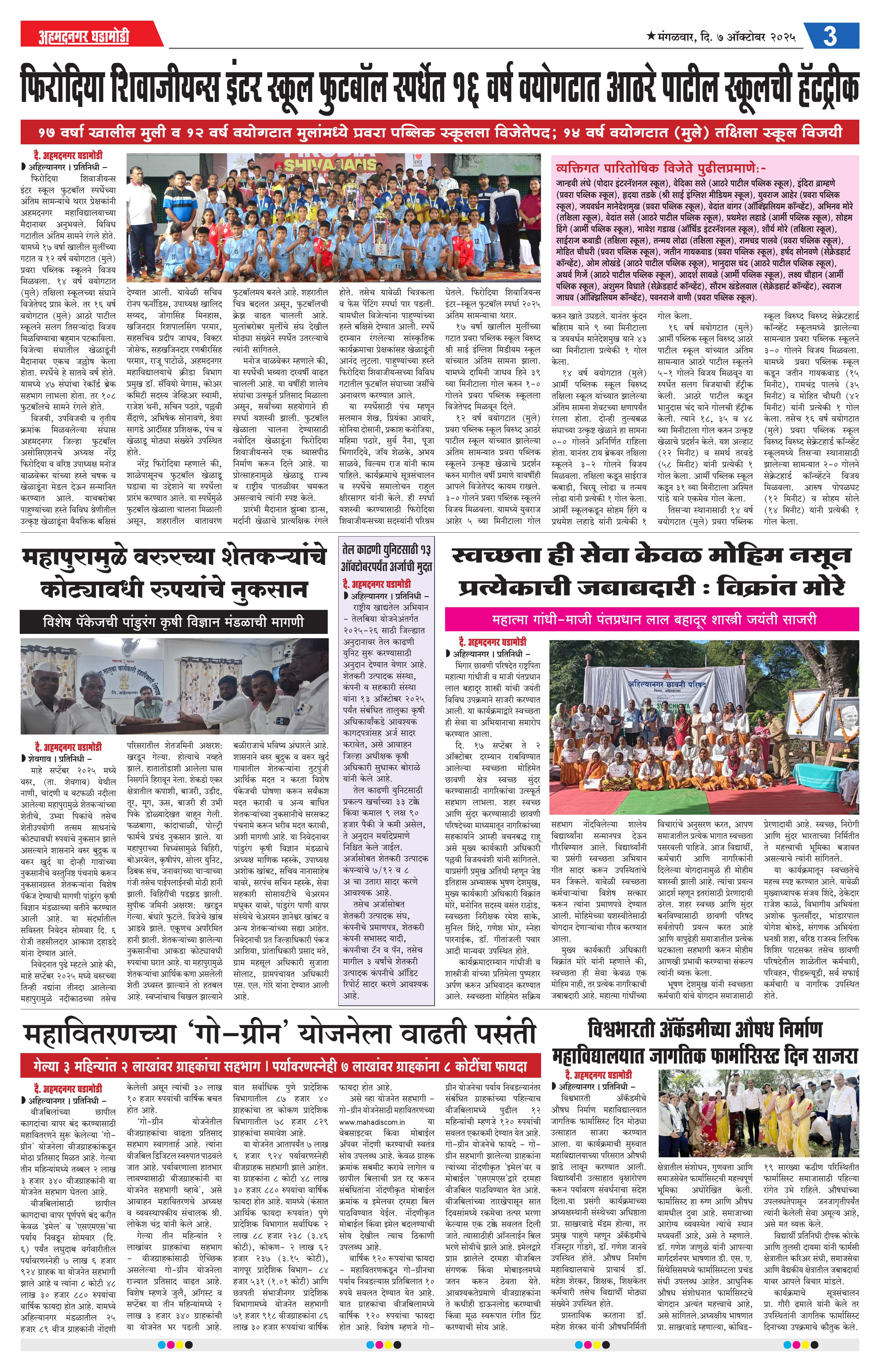 07-10-2025 Page: 3 October 07, 2025 07-10-2025 1 2 3 4 Page 1Page 2Page 3Page 4 × 07-10-2025 Ahmednagar Ghadamodi 7 October 2025_001Ahmednagar Ghadamodi 7 October 2025_002Ahmednagar Ghadamodi 7 October 2025_003Ahmednagar Ghadamodi 7 October 2025_004 << First << 3 >> Last >> Page no 1Page no 2Page no 3Page no 4
