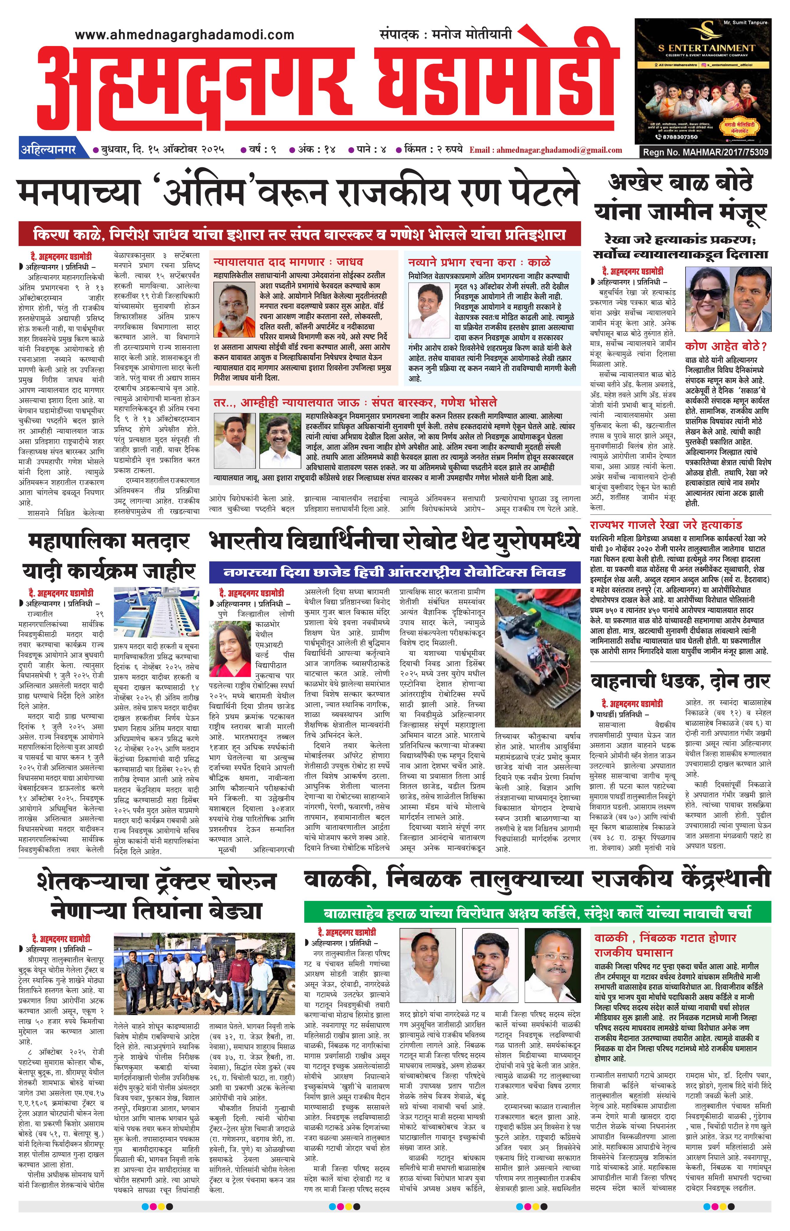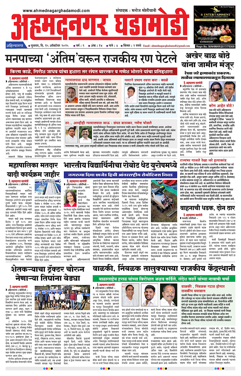15-10-2025 October 15, 2025 15-10-2025 1 2 3 4 Page 1Page 2Page 3Page 4 × 15-10-2025 Ahmednagar Ghadamodi 15 October 2025_001Ahmednagar Ghadamodi 15 October 2025_002Ahmednagar Ghadamodi 15 October 2025_003Ahmednagar Ghadamodi 15 October 2025_004 << First << 1 >> Last >> Page no 1Page no 2Page no 3Page no 4