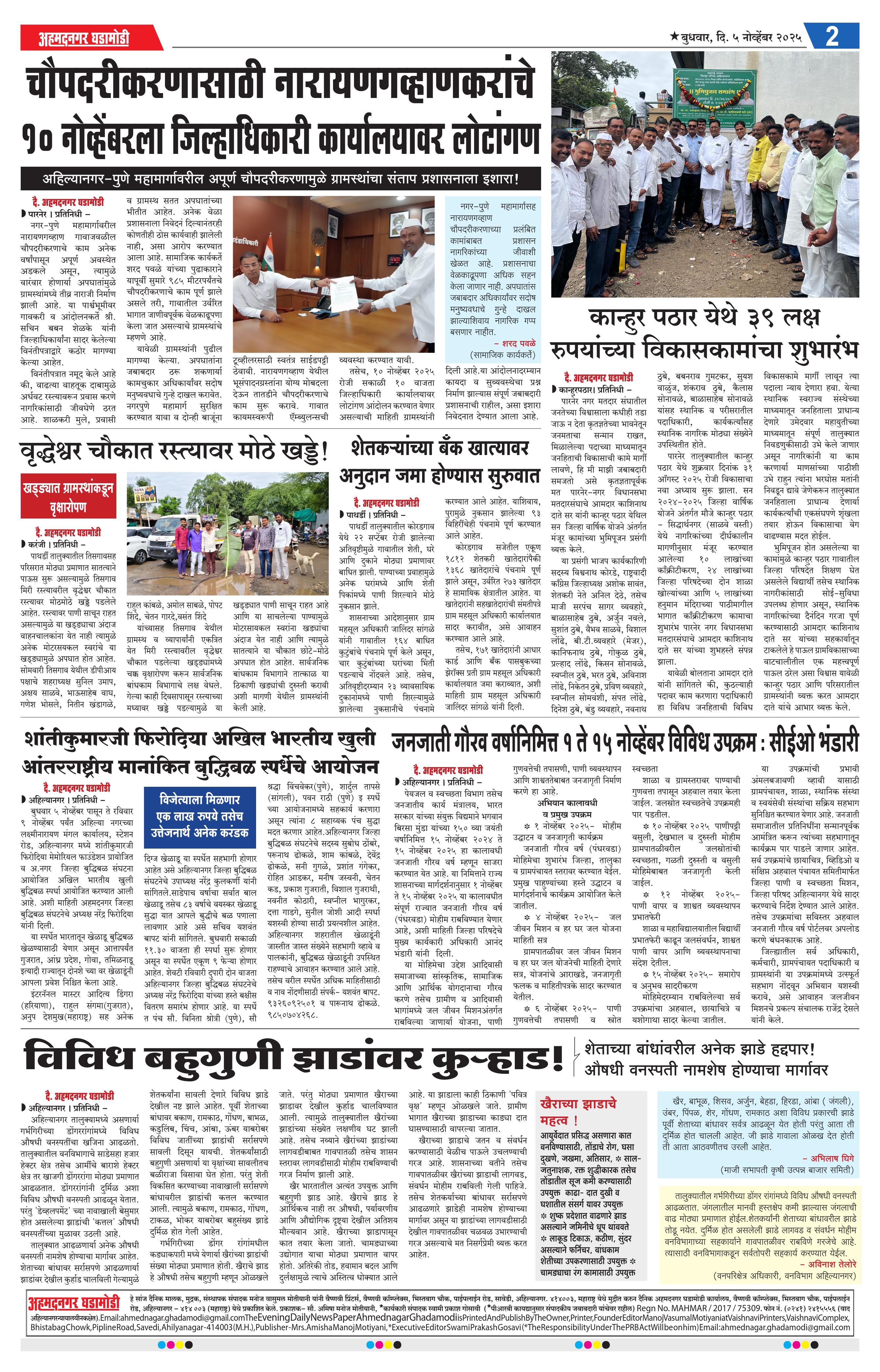 05-11-2025 Page: 2 November 05, 2025 05-11-2025 1 2 3 4 Page 1Page 2Page 3Page 4 × 05-11-2025 Ahmednagar Ghadamodi 5 November 2025_001Ahmednagar Ghadamodi 5 November 2025_002Ahmednagar Ghadamodi 5 November 2025_003Ahmednagar Ghadamodi 5 November 2025_004 << First << 2 >> Last >> Page no 1Page no 2Page no 3Page no 4