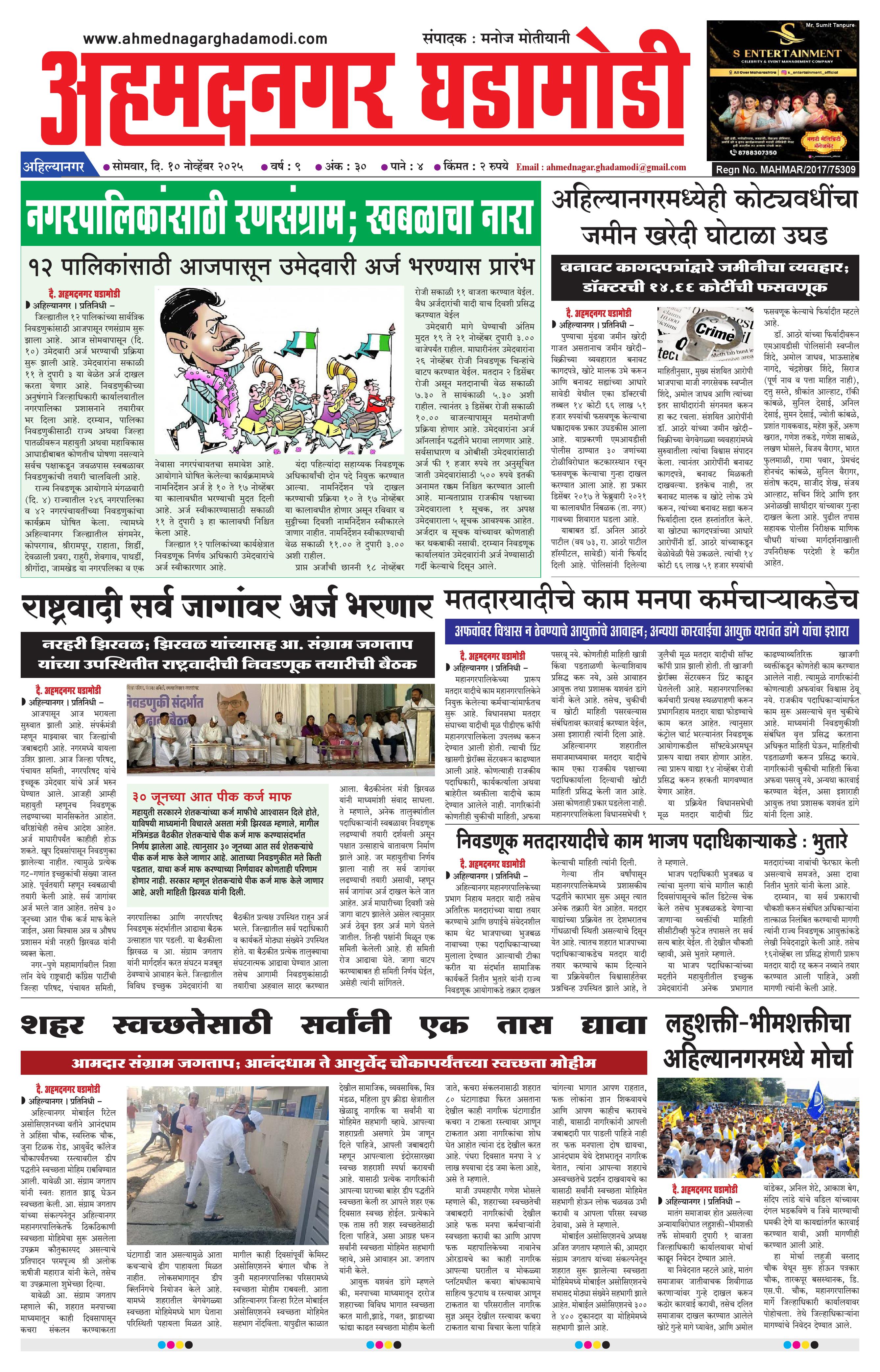 10-11-2025 November 10, 2025 10-11-2025 1 2 3 4 Page 1Page 2Page 3Page 4 × 10-11-2025 Ahmednagar Ghadamodi 10 November 2025_001Ahmednagar Ghadamodi 10 November 2025_002Ahmednagar Ghadamodi 10 November 2025_003Ahmednagar Ghadamodi 10 November 2025_004 << First << 1 >> Last >> Page no 1Page no 2Page no 3Page no 4