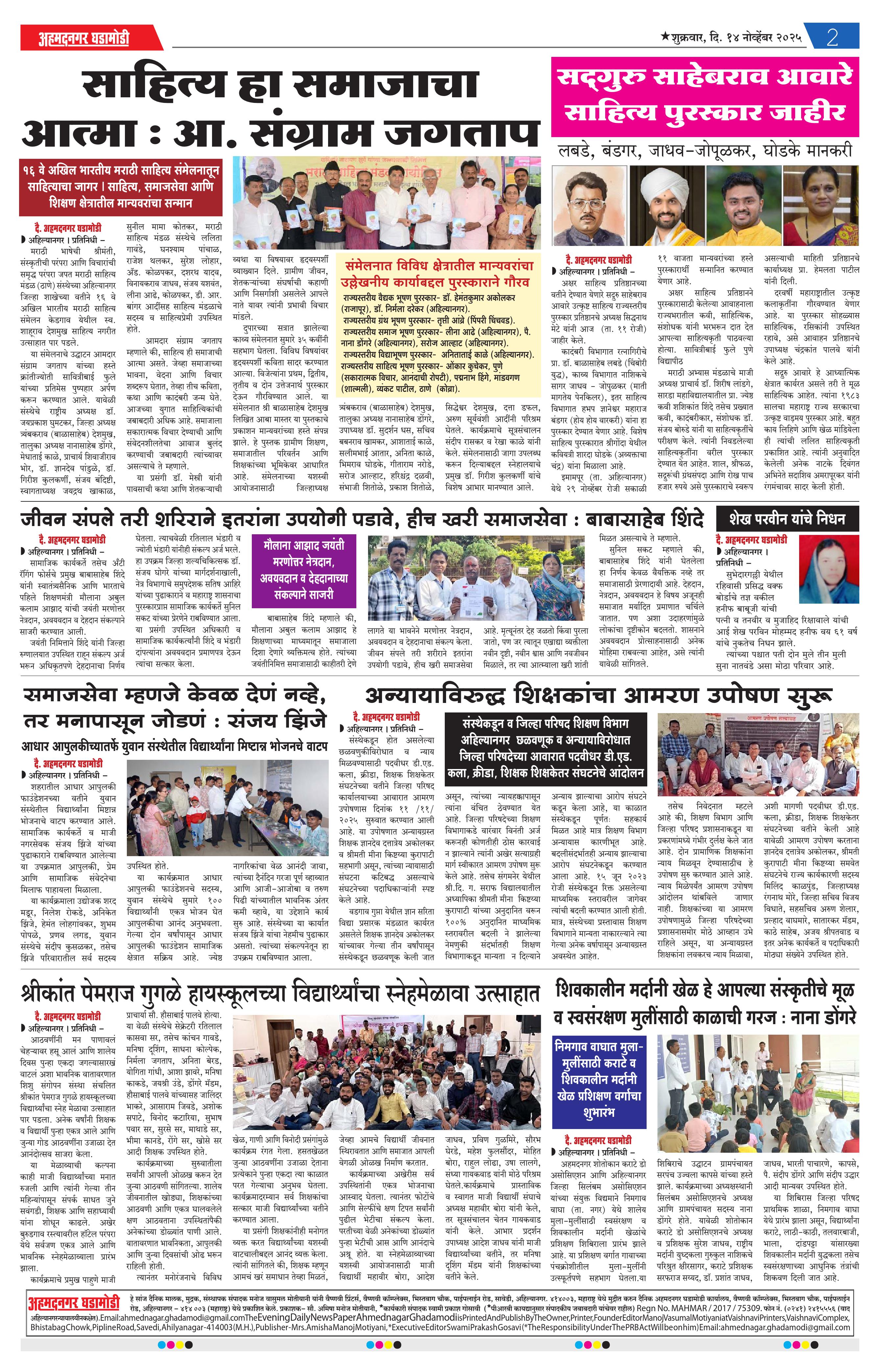 14-11-2025 Page: 2 November 14, 2025 14-11-2025 1 2 3 4 Page 1Page 2Page 3Page 4 × 14-11-2025 Ahmednagar Ghadamodi 14 November 2025_001Ahmednagar Ghadamodi 14 November 2025_002Ahmednagar Ghadamodi 14 November 2025_003Ahmednagar Ghadamodi 14 November 2025_004 << First << 2 >> Last >> Page no 1Page no 2Page no 3Page no 4