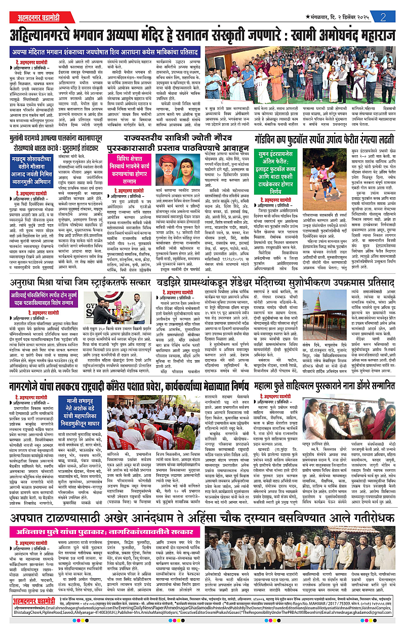 02-12-2025 Page: 2 December 02, 2025 02-12-2025 1 2 3 4 Page 1Page 2Page 3Page 4 × 02-12-2025 Ahmednagar Ghadamodi 02 December 2025_001Ahmednagar Ghadamodi 02 December 2025_002Ahmednagar Ghadamodi 02 December 2025_003Ahmednagar Ghadamodi 02 December 2025_004 << First << 2 >> Last >> Page no 1Page no 2Page no 3Page no 4