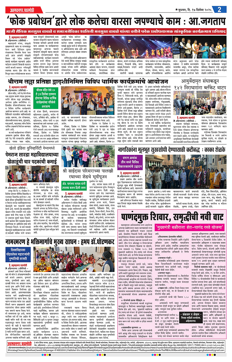 17-12-2025 Page: 2 December 17, 2025 17-12-2025 1 2 3 4 Page 1Page 2Page 3Page 4 × 17-12-2025 Ahmednagar Ghadamodi 17 December 2025_001Ahmednagar Ghadamodi 17 December 2025_002Ahmednagar Ghadamodi 17 December 2025_003Ahmednagar Ghadamodi 17 December 2025_004 << First << 2 >> Last >> Page no 1Page no 2Page no 3Page no 4